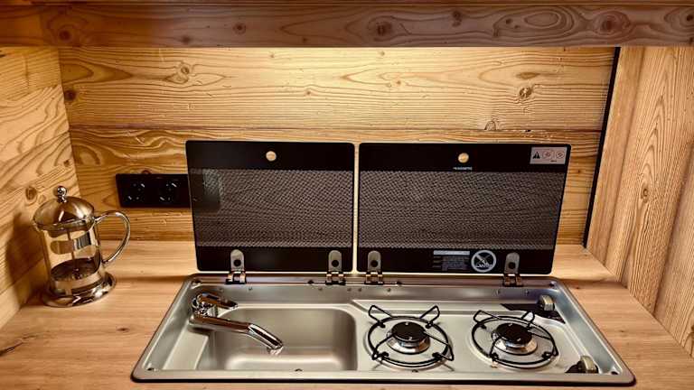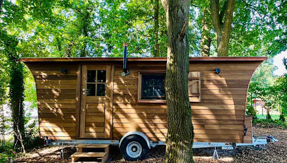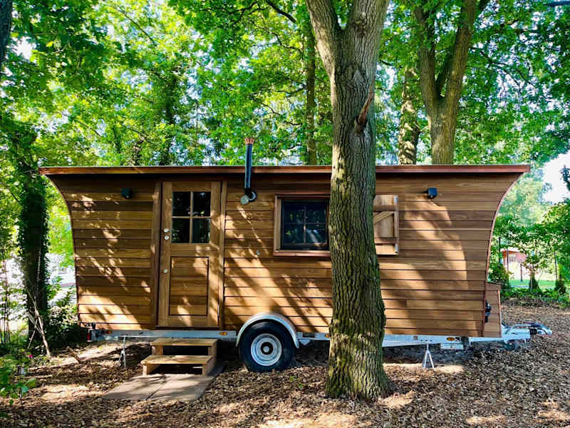 Das Tiny House umfasst ein separates Schlafzimmer, eine voll ausgestattete Küchenzeile mit Kühlschrank und Herdplatte sowie ein Badezimmer. Zudem verfügt die Unterkunft über eine Terrasse und kostenloses Privatparkplatz.