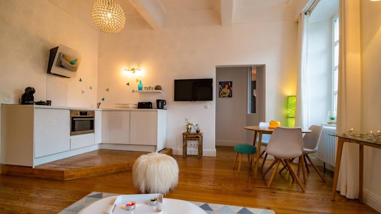 Das Apartment im charme et standing centre ville bietet Ihnen eine gemütliche und komfortable Unterkunft. Mit einem Balkon und Stadtblick können Sie den Charme von Barcelonnette direkt von Ihrem Zimmer aus genießen. Das Apartment verfügt über ein Schlafzimmer, ein Wohnzimmer und eine voll ausgestattete Küche, in der Sie Ihre eigenen Mahlzeiten zubereiten können. Ein Flachbild-Sat-TV sorgt für Unterhaltung und das Badezimmer ist mit einer Dusche und einem Whirlpool ausgestattet, um Ihnen maximalen Komfort zu bieten. Handtücher und Bettwäsche werden gestellt, so dass Sie sich um nichts kümmern müssen.
