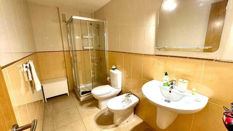 Die Wohnung verfügt über eine voll ausgestattete Küche, die mit einem Kühlschrank, Geschirrspüler, Waschmaschine, Ofen und Herdplatte ausgestattet ist. Handtücher und Bettwäsche werden bereitgestellt, um den Gästen zusätzlichen Komfort zu bieten.