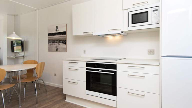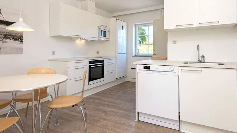 Das Ferienhaus beinhaltet zwei Schlafzimmer und ein Badezimmer, ausgestattet mit einer Badewanne oder Dusche. Die Küche ist komplett ausgestattet und verfügt über einen Kühlschrank sowie einen Geschirrspüler. Das Wohnzimmer bietet ausreichend Platz und Annehmlichkeiten für einen angenehmen Aufenthalt.