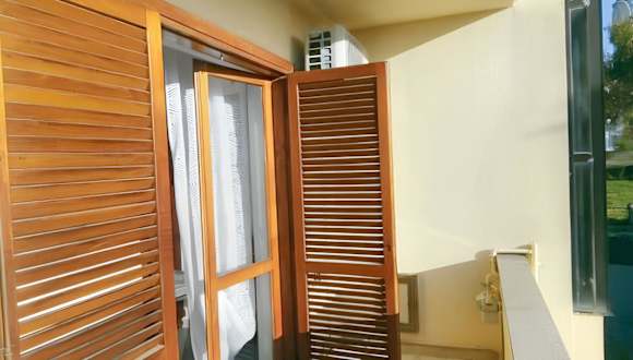 Die Ferienwohnung verfügt über eine Klimaanlage und umfasst ein Schlafzimmer. Zur Ausstattung gehören Sitzgelegenheiten, ein TV, ein DVD-Player sowie eine Küche mit einem Kühlschrank.