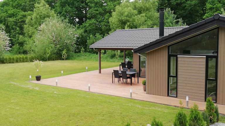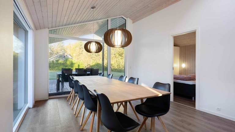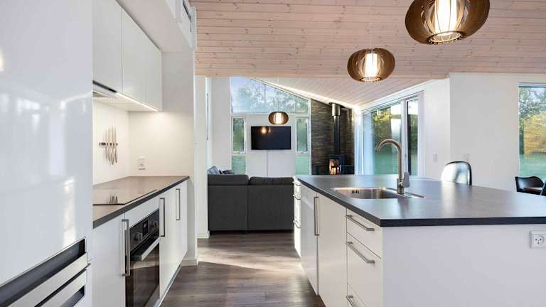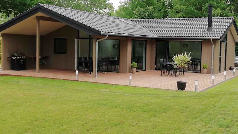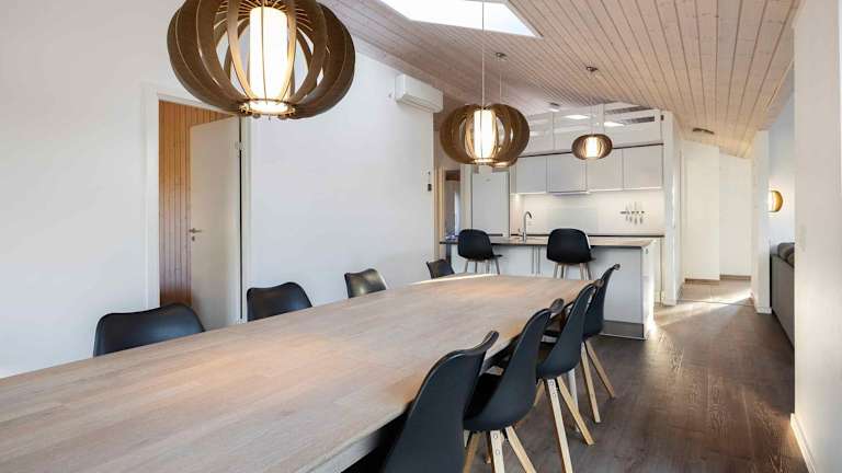 Das Ferienhaus verfügt über vier Schlafzimmer, die den Gästen ausreichend Platz bieten. Die voll ausgestattete Küche enthält einen Kühlschrank, Geschirrspüler, Waschmaschine und Ofen, was die Selbstversorgung erleichtert. Weitere Annehmlichkeiten umfassen Gartenmöbel und eine Terrasse.