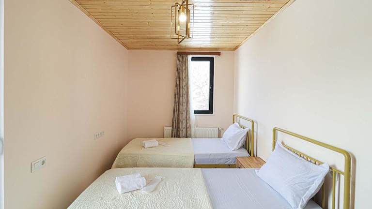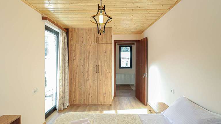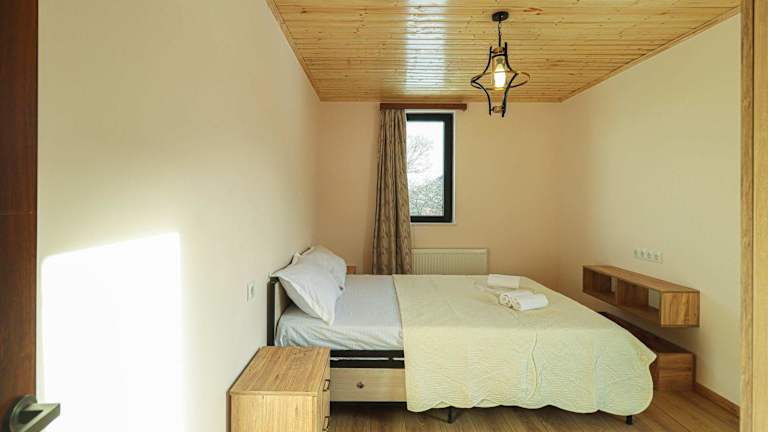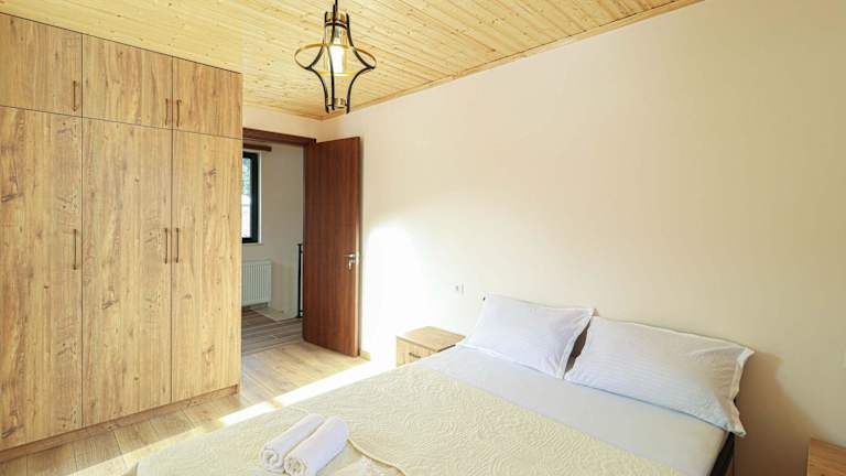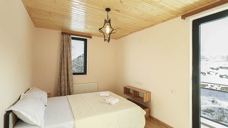 Das Ferienhaus umfasst zwei Schlafzimmer, zwei Badezimmer und ist mit Bettwäsche sowie Handtüchern ausgestattet. Außerdem verfügt es über einen TV, eine voll ausgestattete Küche und eine Veranda, die einen schönen Blick auf die umliegenden Berge bietet.