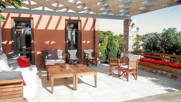 Die Unterkunft liegt in Chroussa, Syros, etwa 3 km vom Strand Paralia Achladi entfernt. In der Umgebung befinden sich Sehenswürdigkeiten wie die Neorion Shipyards (7 km) und Miaouli Square (8,1 km). Der Flughafen Syros ist 6 km entfernt.