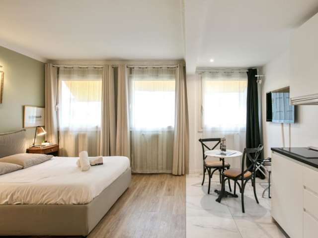 Das Studio bietet eine komfortable Ausstattung, einschließlich einer Dusche, kostenlosen Pflegeprodukten und einem Haartrockner.