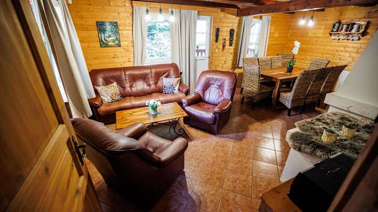 Chata 70 Dřevěnka Prkenný Důl ist ein Chalet, das eine Bar sowie Ausblicke auf den Garten bietet. Es verfügt über eine Terrasse mit Flussblick und bietet eine gemütliche Atmosphäre für einen entspannten Aufenthalt.