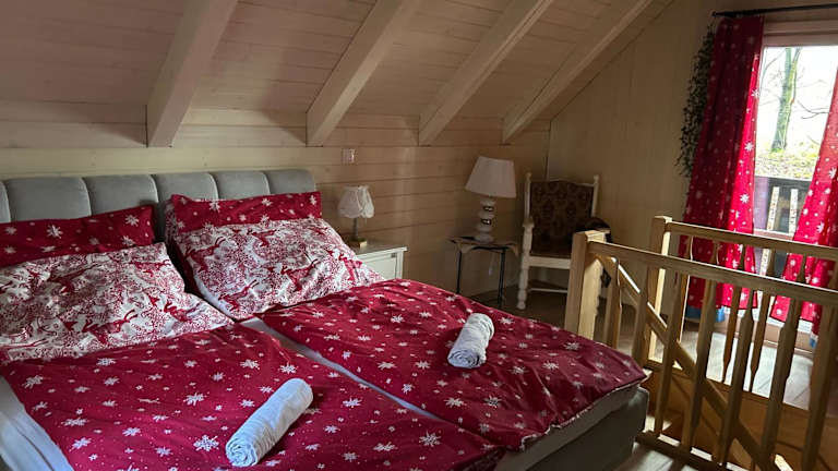 Das Chalet verfügt über ein Schlafzimmer, eine voll ausgestattete Küche mit einem Kühlschrank und einem Kochfeld sowie ein Badezimmer mit Dusche. Ein Flachbild-TV und ein Sitzbereich sind ebenfalls vorhanden.