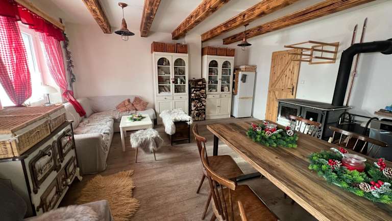 Chata Porcelánka bietet Übernachtungsmöglichkeiten in einem Ferienhaus, das mit einer Veranda oder einem Patio ausgestattet ist. Es verfügt über einen Garten und kostenlose Privatparkplätze.