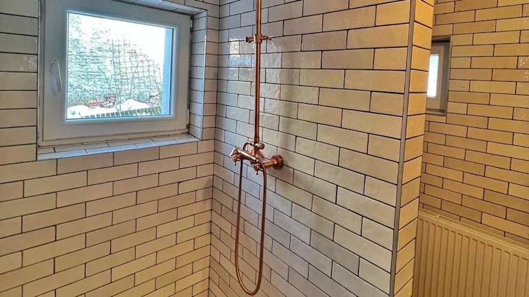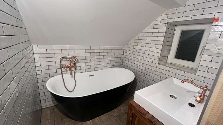 Das Ferienhaus verfügt über zwei Schlafzimmer, eine Küche mit Kühlschrank und Geschirrspüler sowie zwei Badezimmer mit Dusche und Badewanne. Zudem sind Handtücher und Bettwäsche verfügbar.