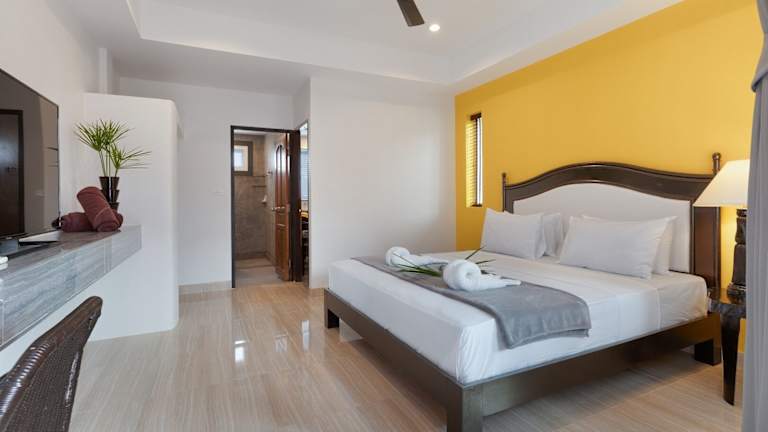 Die Zimmer im Chateau de Lamai sind klimatisiert und bieten einen komfortablen Sitzbereich, einen Flachbild-Sat-TV, eine voll ausgestattete Küche und ein eigenes Bad mit Bidet. Einige Zimmer verfügen über einen Balkon mit Poolblick. Bettwäsche und Handtücher werden gestellt, und in allen Zimmern steht ein Wasserkocher zur Verfügung.