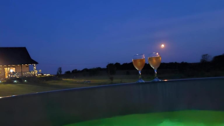 Das Ferienhaus umfasst zwei Schlafzimmer, ein Wohnzimmer sowie eine gut ausgestattete Küche mit Kühlschrank und Ofen. Handtücher und Bettwäsche werden bereitgestellt. Zusätzliche Annehmlichkeiten umfassen Zugang zu einem Whirlpool sowie eine Terrasse und einen Garten.