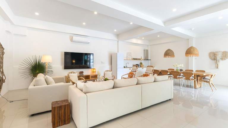 Die Villa ist klimatisiert und umfasst 5 Schlafzimmer, ein Wohnzimmer sowie eine voll ausgestattete Küche mit Kühlschrank und Wasserkocher. Sie verfügt über 5 Badezimmer mit Dusche und kostenlosen Pflegeprodukten. Handtücher und Bettwäsche werden bereitgestellt.