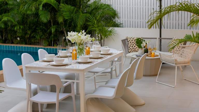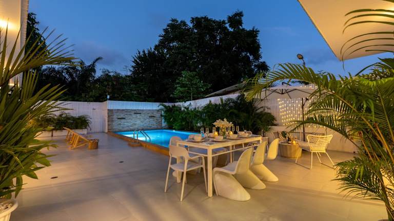 Die Chaweng Boutique Private Pool Villa 5 BR bietet eine luxuriöse Unterkunft mit einem Außenpool, einer Gemeinschaftslounge und einer Terrasse. Die Villa verfügt über einen eigenen Pool und kostenfreies WLAN sowie einen privaten Parkplatz. Die Unterkunft wird von einem privaten Gastgeber betrieben und hier sind keine Junggesellen- oder ähnliche Feiern gestattet.