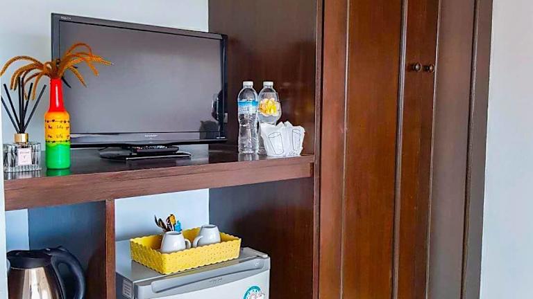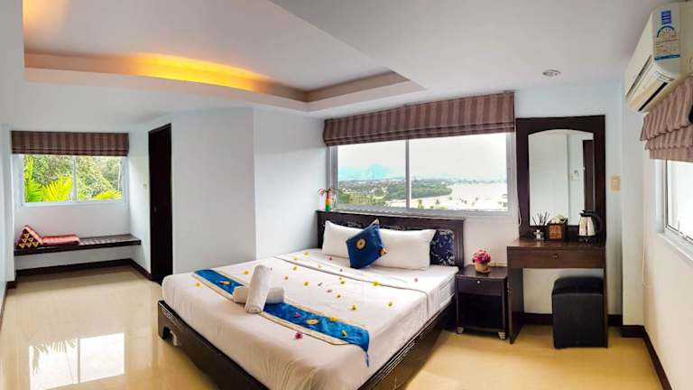 Die Zimmer in der Unterkunft Chaweng Grand View Point sind ausgestattet mit einem Schreibtisch und einem eigenen Badezimmer, das über eine Dusche und kostenlose Pflegeprodukte verfügt. Die Zimmer bieten Stadtblick und verfügen zudem über ein Gemeinschaftsbad, einen Haartrockner sowie Bettwäsche.