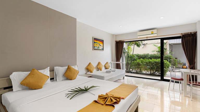 Die hellen und geräumigen Zimmer im Chaweng Terrace Hotel sind klimatisiert und verfügen über große Fenster, Kabel-TV und einen Kühlschrank. Jedes Zimmer ist mit einem modernen eigenen Bad ausgestattet und einige Zimmer bieten einen schönen Blick auf die umliegenden Berge.