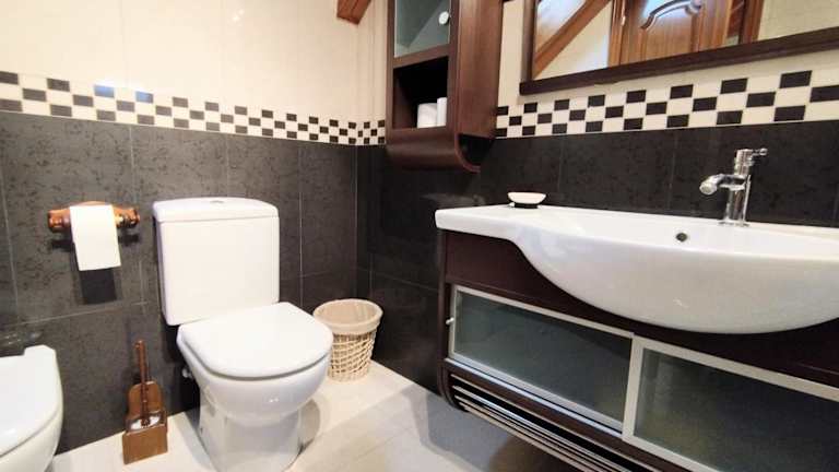 Die Ferienwohnung verfügt über zwei Schlafzimmer und ist mit einer voll ausgestatteten Küche, die einen Kühlschrank und einen Geschirrspüler umfasst, ausgestattet. Des Weiteren stehen den Gästen zwei Badezimmer mit einem Bidet, einem Haartrockner und einer Waschmaschine zur Verfügung. Ein TV ist ebenfalls vorhanden.