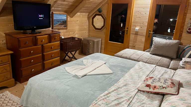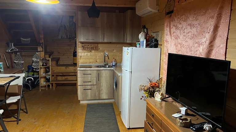 Das klimatisierte Ferienhaus der Cheerful Cabin bietet Ihnen ein gemütliches Schlafzimmer, ein geräumiges Wohnzimmer und eine voll ausgestattete Küche mit Kühlschrank und Wasserkocher. Das Ferienhaus verfügt außerdem über zwei Badezimmer mit Bidet und Dusche. Handtücher und Bettwäsche werden Ihnen zur Verfügung gestellt, damit Sie Ihren Aufenthalt in vollen Zügen genießen können.