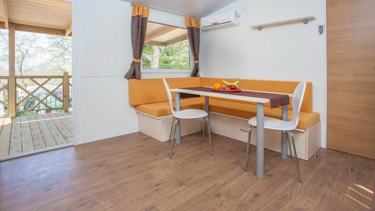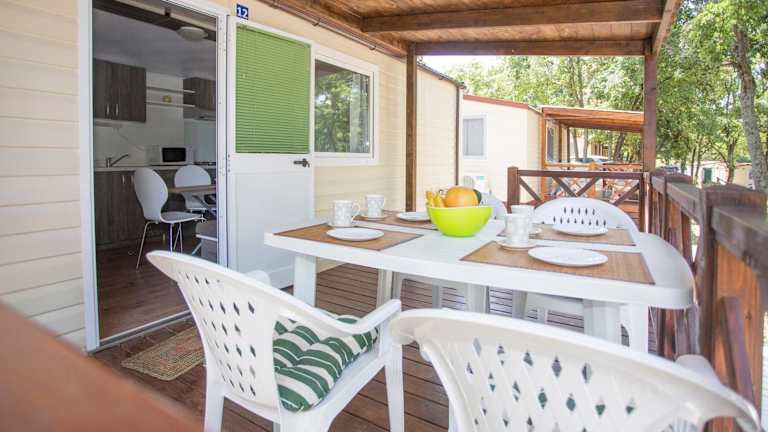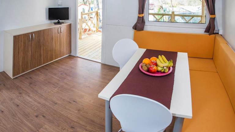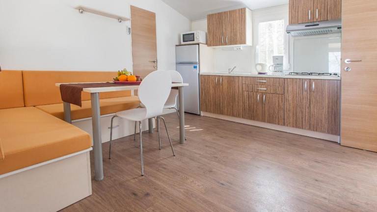 Die Mobile Homes sind mit einer voll ausgestatteten Küchenzeile einschließlich Kühlschrank, Kaffeemaschine, Mikrowelle und Wasserkocher ausgestattet. Zudem bieten sie einen Flachbild-TV sowie ein eigenes Badezimmer mit Dusche.
