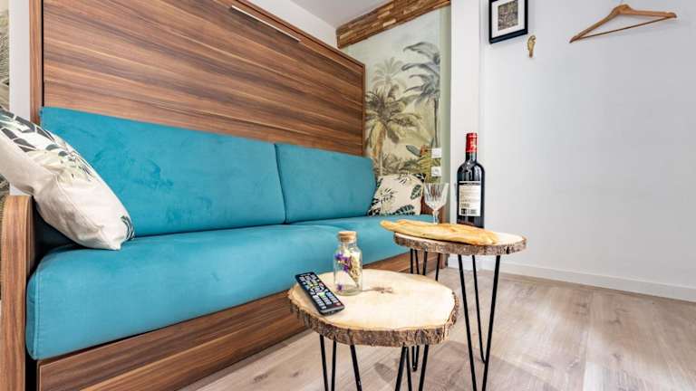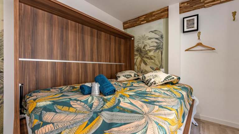 Die Ferienwohnung verfügt über ein Schlafzimmer und eine voll ausgestattete Küche, die mit einem Kühlschrank und einer Mikrowelle ausgestattet ist. Das Badezimmer beinhaltet eine Dusche sowie einen Haartrockner. Handtücher und Bettwäsche werden bereitgestellt.