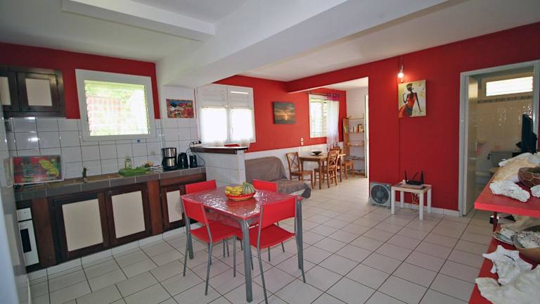 Die klimatisierten Unterkünfte im CHEZ JOJO sind komfortabel und bieten alles, was Sie für einen angenehmen Aufenthalt benötigen. Jedes Zimmer verfügt über einen Balkon mit Gartenblick, wo Sie die Natur und die Umgebung genießen können. Die Zimmer sind mit einem Flachbild-Sat-TV, einem Sitzbereich und einer voll ausgestatteten Küche ausgestattet. Das Gemeinschaftsbad ist geräumig und verfügt über eine Dusche. Zur Ausstattung gehören auch eine Mikrowelle, ein Kochfeld, ein Toaster, eine Kaffeemaschine und ein Wasserkocher, so dass Sie Ihre eigenen Mahlzeiten zubereiten können. Kostenloses WLAN steht Ihnen ebenfalls zur Verfügung.