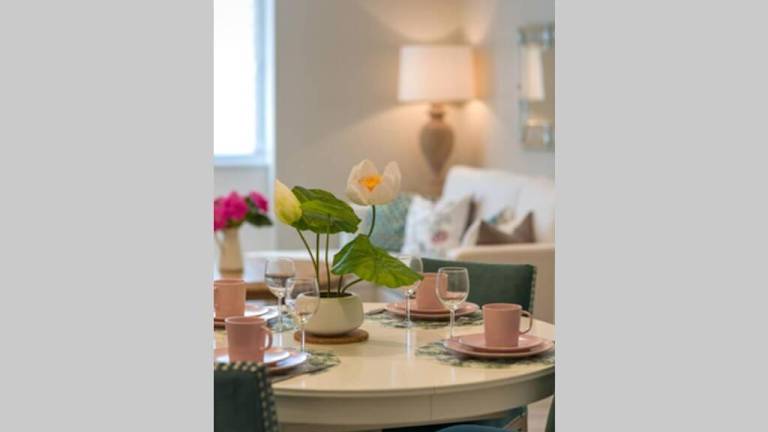 Die Ferienwohnung verfügt über eine voll ausgestattete Küche mit Kühlschrank und Geschirrspüler, einen Flachbild-TV, einen Sitzbereich und ein Badezimmer mit Dusche.