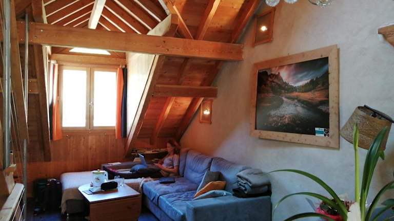Die Unterkunft befindet sich in Saint-Chaffrey und bietet einen Blick auf die Berge. In der Umgebung können verschiedene Aktivitäten wie Wandern und Skifahren ausgeübt werden.