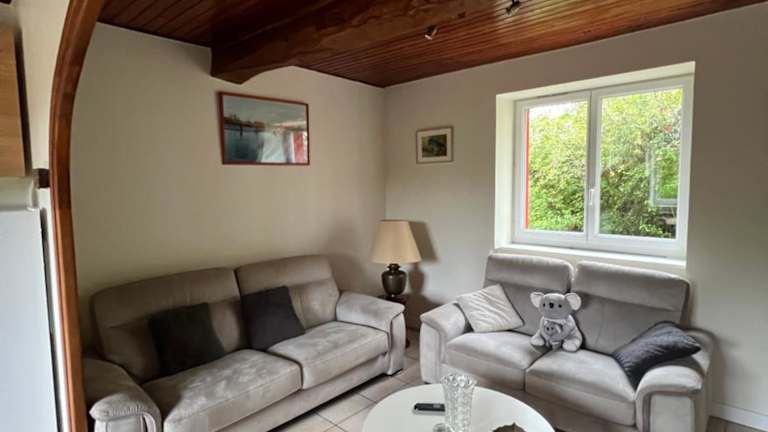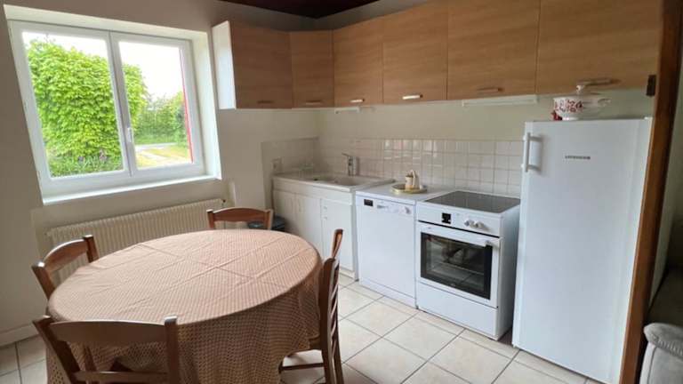 Das Ferienhaus bietet zwei Schlafzimmer, ein Wohnzimmer sowie eine gut ausgestattete Küche mit Kühlschrank und Geschirrspüler. Es verfügt über ein Badezimmer mit Dusche. Zur Verfügung stehen zudem Handtücher und Bettwäsche. Eine Terrasse mit Gartenblick lädt zum Verweilen ein.