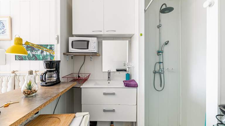 Die Ferienwohnung verfügt über ein Schlafzimmer, ein Badezimmer, Bettwäsche, Handtücher, einen Flachbild-TV, einen Essbereich, eine voll ausgestattete Küchenzeile und eine Terrasse mit Blick auf den Garten. Handtücher und Bettwäsche können gegen Aufpreis angeboten werden.