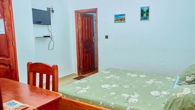 Das Hotel Chez Sabine in Abomey ist ein charmantes Bed & Breakfast, das mit seinem schönen Garten, der Terrasse und dem hauseigenen Restaurant einen angenehmen Aufenthalt verspricht. Das kostenfreie WLAN und der Gartenblick sorgen für zusätzlichen Komfort. Kostenlose Privatparkplätze und eine rund um die Uhr besetzte Rezeption stehen den Gästen zur Verfügung. Die Zimmer sind mit einem Flachbild-Sat-TV ausgestattet und Handtücher sowie Bettwäsche werden gestellt. Jeden Morgen wird im Bed & Breakfast ein köstliches kontinentales und vegetarisches Frühstück serviert. Der Flughafen Cotonou Cadjehoun ist etwa 128 km entfernt, und die Unterkunft bietet einen kostenpflichtigen Flughafentransfer an.