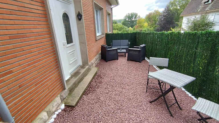 Chez Steph et Angie bietet Übernachtungsmöglichkeiten in einer Ferienwohnung, die mit einem Garten, einer Gemeinschaftslounge und einer Terrasse ausgestattet ist. Es stehen kostenfreies WLAN und Gartenblick zur Verfügung.