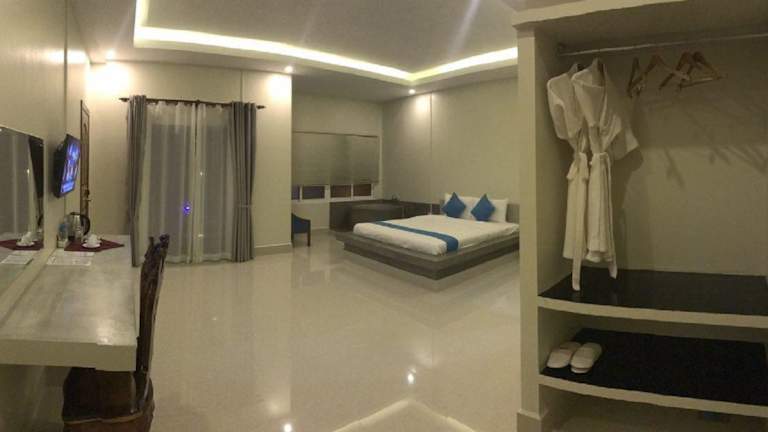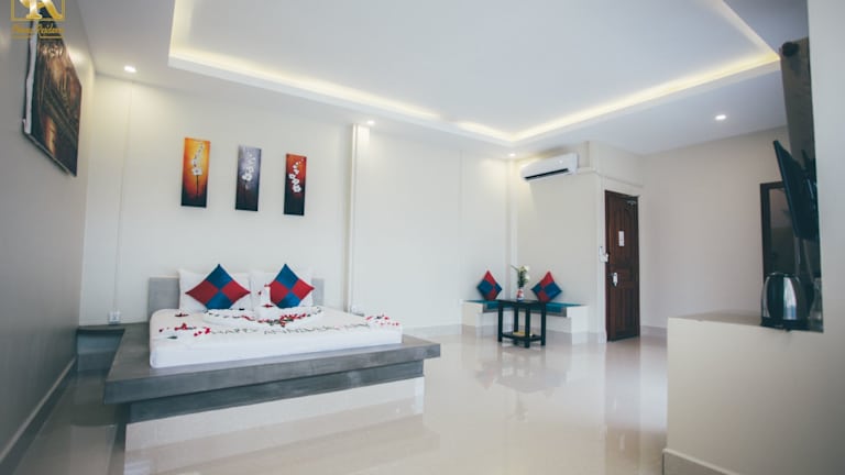 Das Hotel Chheng Residence in Siem Reap ist der perfekte Ort für einen erholsamen Urlaub. Mit einem ganzjährigen Außenpool, einer Terrasse und einer hauseigenen Bar bietet das Hotel alle Annehmlichkeiten, die Sie für einen komfortablen Aufenthalt benötigen. Die Zimmer sind stilvoll eingerichtet und verfügen über kostenfreies WLAN, ein eigenes Bad mit einer separaten Badewanne und Dusche sowie einen Balkon oder einen Sitzbereich zum Entspannen. Das freundliche Personal steht Ihnen rund um die Uhr zur Verfügung und hilft Ihnen gerne bei der Organisation von Ausflügen und der Buchung von Eintrittskarten. Nutzen Sie die Möglichkeit, Fahrräder auszuleihen oder ein Auto zu mieten, um die Umgebung zu erkunden. Die zentrale Lage des Hotels ermöglicht es Ihnen, die Pub Street und die King's Road Angkor in kurzer Entfernung zu erreichen. Der Flughafen Siem Reap ist ebenfalls nur 7 km entfernt.