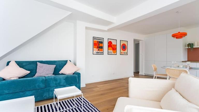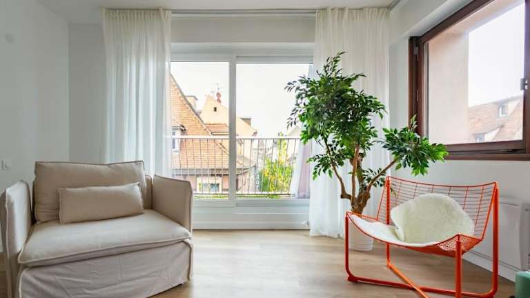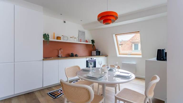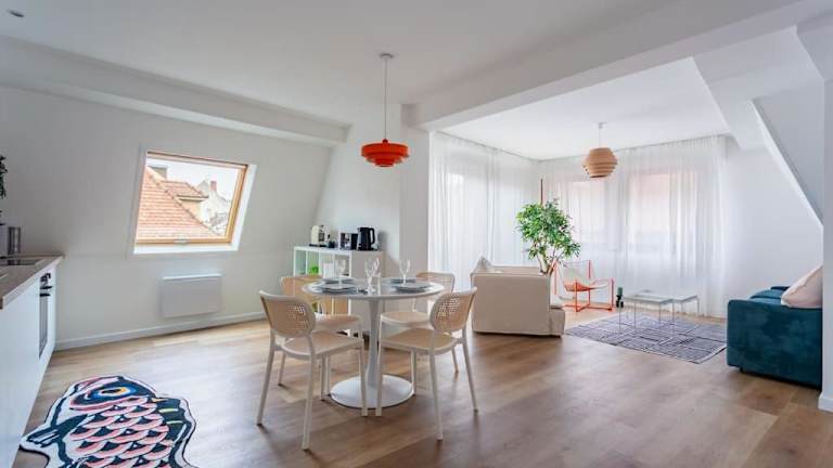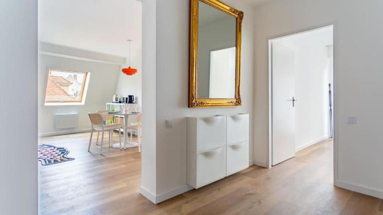 Chic Bauhaus à Petite France Evasion et Design bietet Gartenblick und eine Terrasse. Die Ferienwohnung ist modern gestaltet und bietet eine ruhige Atmosphäre für die Gäste. Es handelt sich um eine Nichtraucherunterkunft und Feiern wie Junggesellenabschiede sind nicht gestattet.
