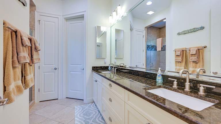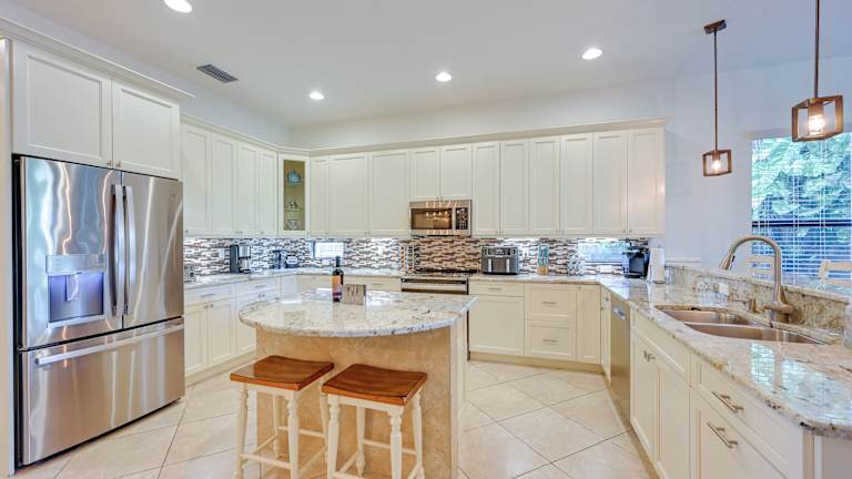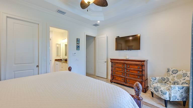 Das Ferienhaus verfügt über 3 Schlafzimmer, ein Wohnzimmer mit Flachbild-TV mit Kabelkanälen, eine voll ausgestattete Küche mit Kühlschrank und Geschirrspüler sowie 4 Badezimmer mit Haartrockner. Handtücher und Bettwäsche werden gestellt. Die Unterkunft umfasst eine Veranda/Patio und bietet einen Zugang zum beheizten Pool.