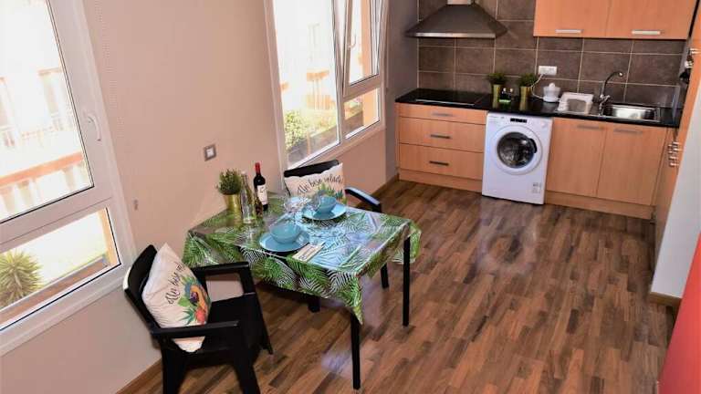 Die Ferienwohnung verfügt über ein Schlafzimmer, ein Wohnzimmer mit einem Flachbild-TV, eine gut ausgestattete Küche mit Kühlschrank und Ofen sowie ein Badezimmer mit Dusche. Handtücher und Bettwäsche werden bereitgestellt. Ein Balkon sorgt für zusätzliche Annehmlichkeiten und einen schönen Meerblick.