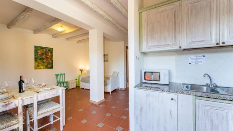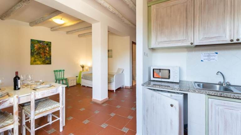 Die Unterkunft verfügt über ein klimatisiertes Schlafzimmer, ein Wohnzimmer sowie eine voll ausgestattete Küchenzeile. Diese enthält einen Kühlschrank und einen Wasserkocher. Es gibt ein Badezimmer, das mit einem Bidet und einem Haartrockner ausgestattet ist. Ein Fernseher ist ebenfalls vorhanden.