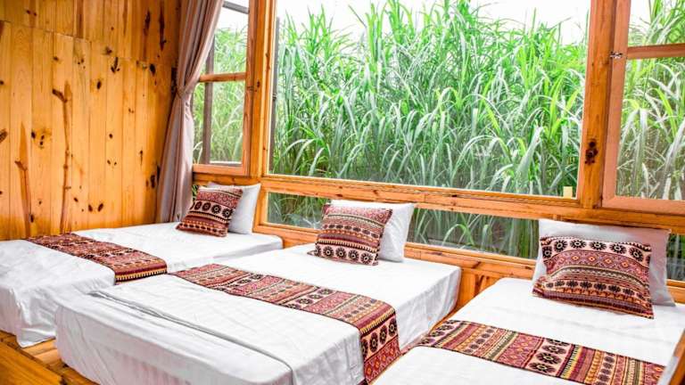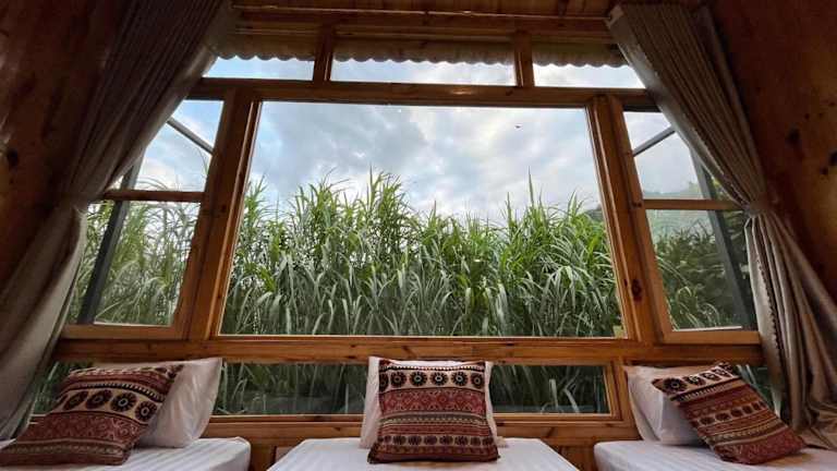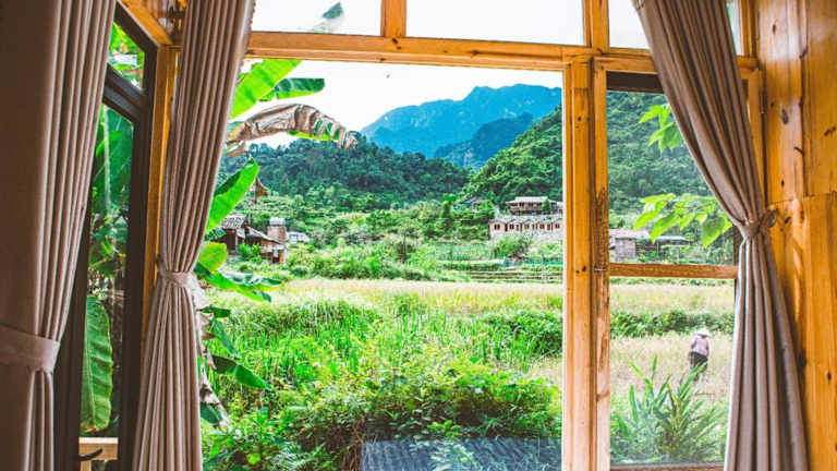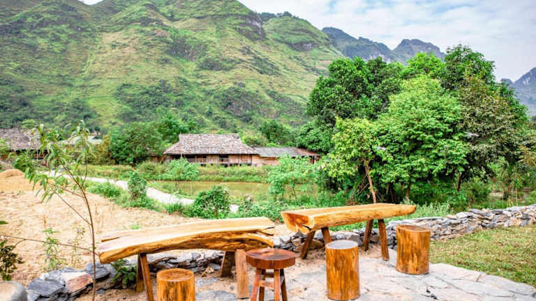 Die Unterkunft Chien's Lodge Du Gia befindet sich in Làng Cac und bietet einen Ausblick auf die umliegenden Berge.
