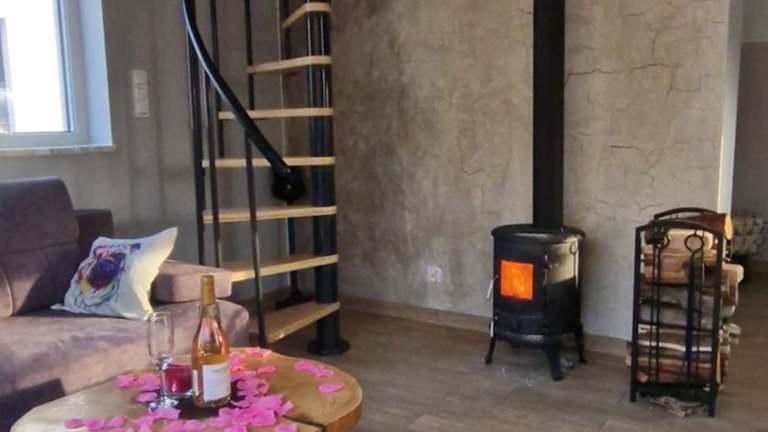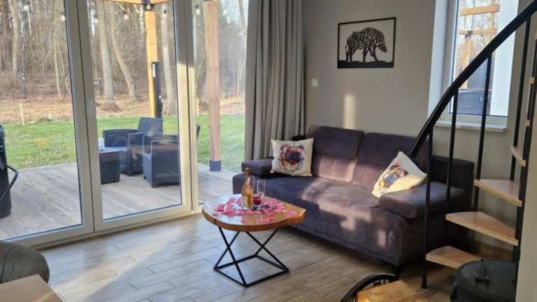 Das Ferienhaus umfasst zwei Schlafzimmer, ein Wohnzimmer und eine voll ausgestattete Küche, die mit einem Kühlschrank und einer Kaffeemaschine ausgestattet ist. Es gibt ein Badezimmer mit einer Dusche und einem Whirlpool. Handtücher und Bettwäsche werden zur Verfügung gestellt.