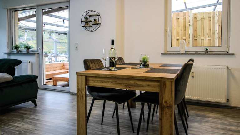 Die Unterkunft befindet sich in Zell (Mosel), umgeben von Möglichkeiten zum Wandern und Radfahren. Die nächstgelegene Stadt ist Cochem, die etwa 29 km entfernt liegt. Der Flughafen Frankfurt-Hahn ist 18 km entfernt.