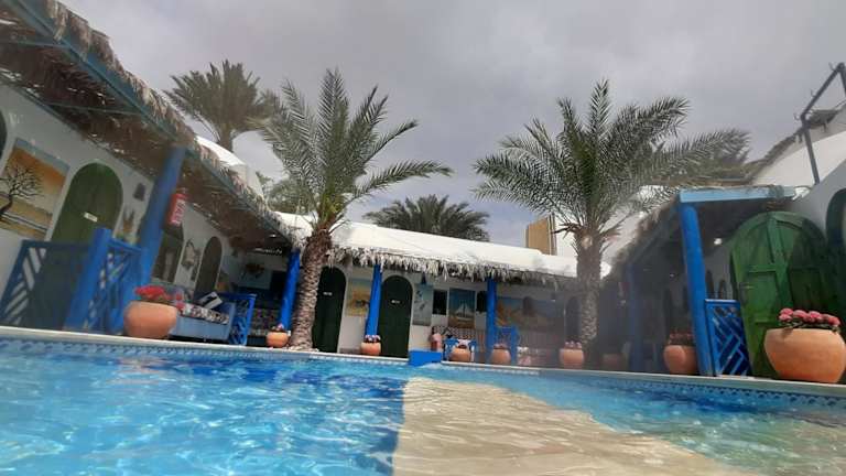 Erleben Sie einen entspannten Aufenthalt im Chillax Dahab, einem charmanten 2-Sterne-Hotel in Dahab. Nur 300 m vom Strand entfernt, bietet es eine angenehme Atmosphäre mit Gemeinschaftslounge, Terrasse und Restaurant. Die klimatisierten Zimmer sind mit kostenfreiem WLAN und einem eigenen Bad ausgestattet. Genießen Sie den Poolblick vom Balkon und starten Sie jeden Morgen mit einem köstlichen Frühstück. Entspannen Sie im Whirlpool und profitieren Sie von den praktischen Einrichtungen wie der Gemeinschaftsküche und dem Zimmerservice. Das freundliche Personal an der 24-Stunden-Rezeption steht Ihnen in mehreren Sprachen zur Verfügung.