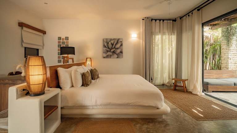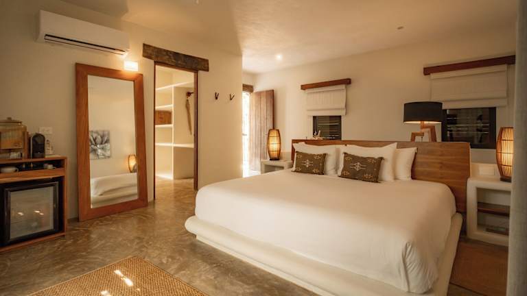 Das Chiringuito Tulum bietet 13 Zimmer in einem zweistöckigen Haupthaus und sechs Nebengebäuden. Die Zimmer sind komfortabel eingerichtet und verfügen über Annehmlichkeiten wie Klimaanlage, Safe, Kaffee- / Teekocher und kostenfreies WLAN. Jedes Zimmer hat einen eigenen Balkon oder eine Terrasse.