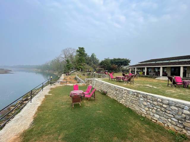 Buchen Sie das Chitwan Riverside Resort für einen unvergesslichen Aufenthalt am Rande des Nationalparks Chitwan. Das Resort bietet komfortable Unterkünfte mit kostenfreiem WLAN und einer herrlichen Lage am Fluss Rapti. Genießen Sie den wunderschönen Garten, entspannen Sie an der Bar und lassen Sie sich im hauseigenen Restaurant mit einer Vielfalt an köstlichen Gerichten verwöhnen. Das Resort bietet zudem einen Kinderspielplatz und eine Vielzahl von Aktivitäten wie Radfahren.