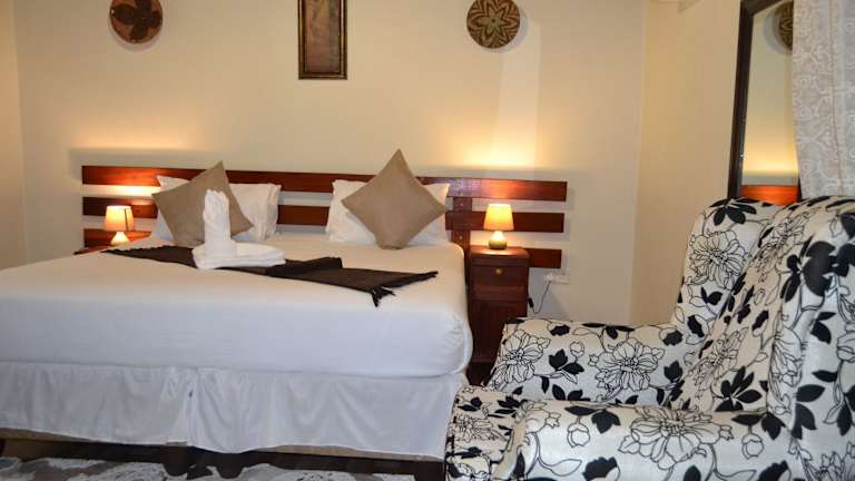 Die klimatisierten Zimmer in den Chobe Sunset Chalets bieten Ihnen einen komfortablen Rückzugsort. Jedes Zimmer verfügt über einen eigenen Sitzbereich, einen Schreibtisch und ein eigenes Badezimmer. Zusätzlich stehen Ihnen Kaffee- und Teezubereitungsmöglichkeiten zur Verfügung, um Ihren Aufenthalt noch angenehmer zu gestalten.