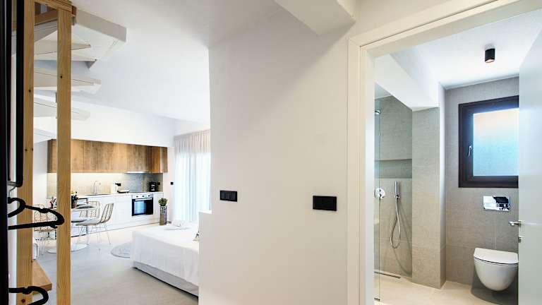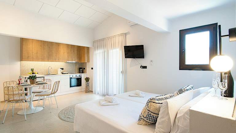 Die Studios sind ausgestattet mit Klimaanlage, kostenlosem WLAN, einem Sitzbereich, einem Flachbild-TV, einer voll ausgestatteten Küche mit Kühlschrank und Herdplatte sowie einem eigenen Badezimmer mit Dusche und Haartrockner. Alle Einheiten verfügen über einen Balkon mit Blick auf die Berge.