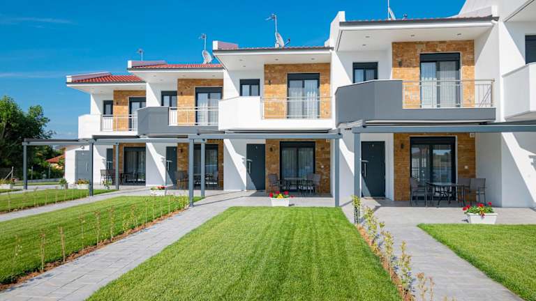 Das Hotel Chryssis Village by Travel Pro Services - Nea Potidaia Halkidiki in Nea Potidaea, Mazedonien, bietet komfortable Unterkünfte mit kostenfreiem WLAN und einem atemberaubenden Blick auf das Meer. Hier können Sie einen entspannten Urlaub genießen und die Annehmlichkeiten wie den Kinderspielplatz, den Garten und den Grill nutzen. Die Unterkunft liegt in der Nähe des Strandes Nea Potidia und bietet eine voll ausgestattete Küche sowie kostenfreie Privatparkplätze.