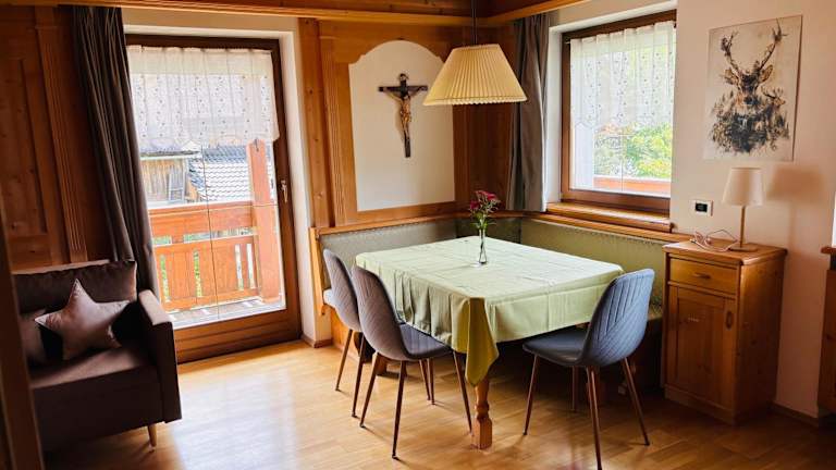 Das Ciasa Fam Comploi bietet keine Verpflegungsmöglichkeiten vor Ort. Jedoch finden Sie in der Umgebung verschiedene Restaurants und Cafés, in denen Sie regionale Spezialitäten und internationale Gerichte genießen können.