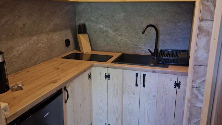 Die Wohneinheiten sind mit voll ausgestatteten Küchen ausgestattet, in denen Gäste die Möglichkeit haben, selbst zu kochen und ihre Mahlzeiten einzunehmen. Es gibt einen Esstisch in jeder Einheit.