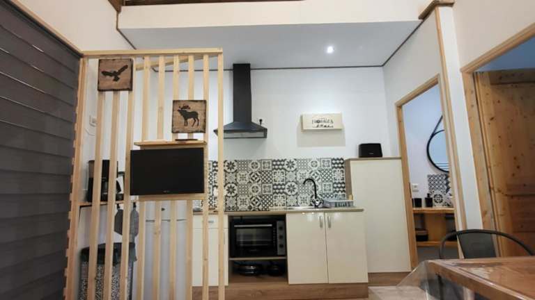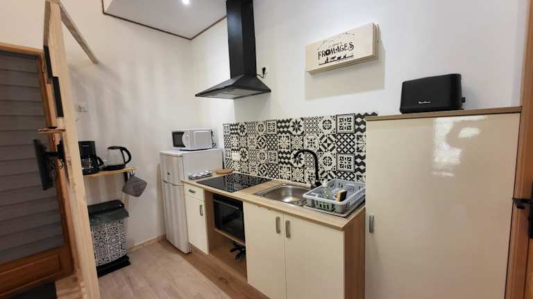 Die Unterkunft umfasst ein Schlafzimmer, ein Wohnzimmer und eine voll ausgestattete Küche, die mit einem Kühlschrank und einer Kaffeemaschine ausgestattet ist. Zur Verfügung stehen ebenfalls ein Badezimmer mit Badewanne oder Dusche sowie ein Haartrockner. Für zusätzlichen Komfort können Handtücher und Bettwäsche gegen eine zusätzliche Gebühr bereitgestellt werden.