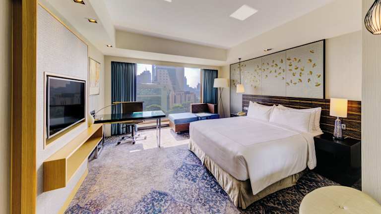 Die Zimmer sind modern ausgestattet und verfügen über Badezimmer mit Dusche und Badewanne, Klimaanlage, Minibar, Safe sowie Tee- und Kaffeezubehör. Die meisten Zimmer haben einen Balkon, und einige sind behindertengerecht. Hausschuhe, WLAN ohne Gebühr und Fernseher mit Satellitenempfang tragen zum Komfort der Gäste bei. Familienzimmer sind ebenfalls buchbar.