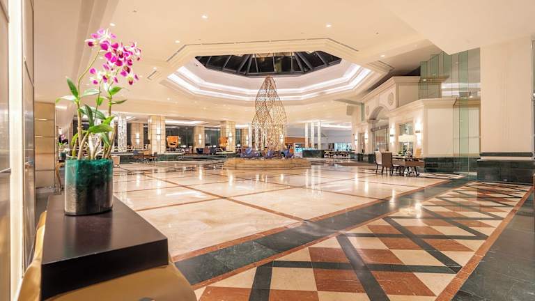 Das gastronomische Angebot umfasst vier Restaurants, ein Café, eine Bar und einen Pub. Gäste können zwischen Übernachtung mit Frühstück, Halbpension und Vollpension wählen. Zu den Mahlzeiten werden kontinentale Buffets angeboten, und es gibt die Möglichkeit, Diätgerichte sowie vegetarische Gerichte zu bestellen. Eine besondere Attraktion ist das Showcooking. Diverse alkoholische und alkoholfreie Getränke stehen zur Verfügung.