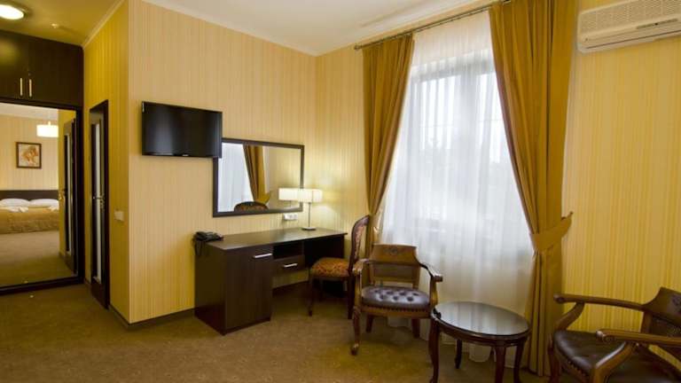 Im Restaurant Tsargrad wird ein tägliches kontinentales Frühstück angeboten, sowie traditionelle ukrainische und internationale Spezialitäten. Die Bar lädt zum Entspannen bei einem Getränk ein, und der Zimmerservice steht rund um die Uhr zur Verfügung.